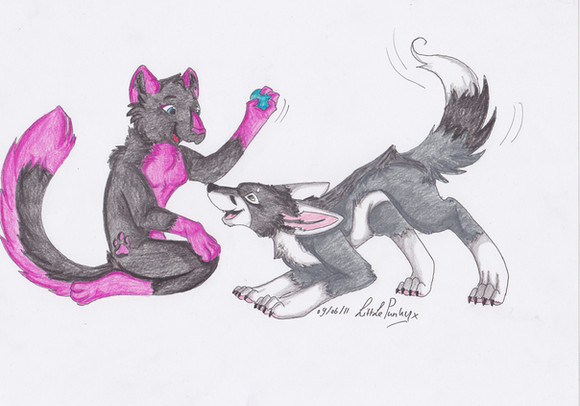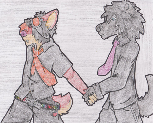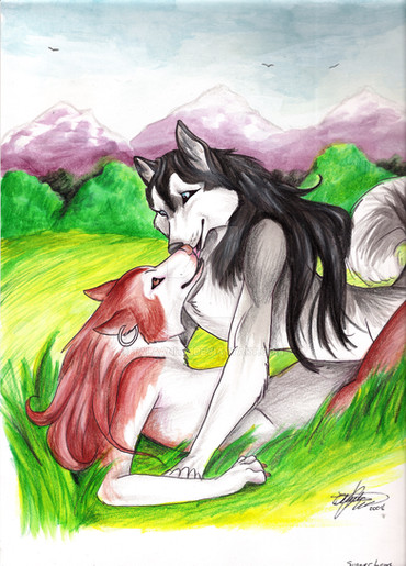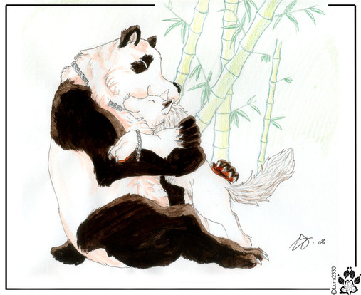 A very nice moment between a puppy wolf and his monkey master.Art done by Eyfun