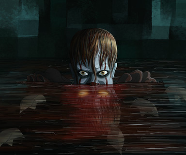 The reflection he's casting on the water is pretty creepy as well.
