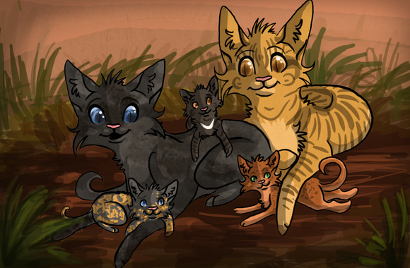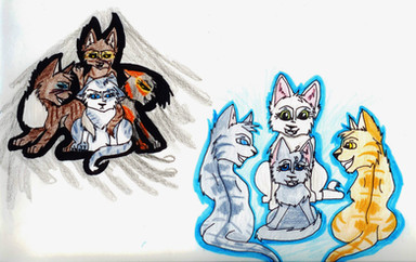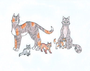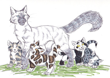 Alright! So I've finally started my 100 Warrior Challage and I decided to start with my characters Spottedstar, Wildfur, Patchkit, Whitekit, and Brackenkit. ^^ They are being introduced to life in WindClan.And, oh my! Finally, I've drawn a decent picture of Spottedstar! GAH!