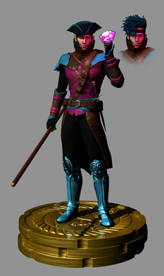 You have an amazing rendering of Gambit here! I really, really love the design you put together, combines some of the best pieces of his outfits. I'd totally make this costume if he wore it, I remember going crazy trying to find one that I could create that didn't look dorky in real life on me (because few people can honestly pull off the fuchsia look XD). You have a great eye for design, and the colors are just gorgeous!