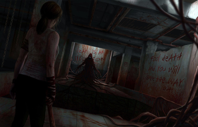 So I imagine that the woman (who looks like Mia from Resident Evil 7) end up in the building for some reason (maybe she suddenly woke up there, or she's trying to find aomething), and as she explore, her surrounding swift from reality into a creepy illusion.
