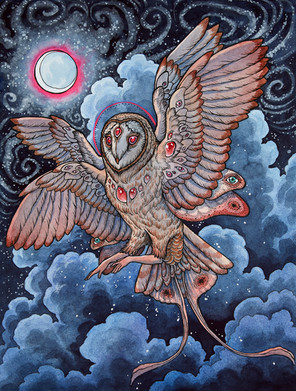 #bird #cape #creature #fantasy #gentle #gigant #humanoid #key #magic #majestic #owl #realistic #watercolor #wizard