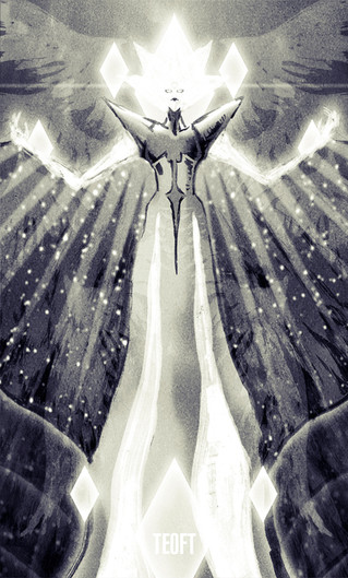 I would imagine this as a mural on some historically ancient part of Homeworld from a time the Diamonds were worshipped as Gods. Goddess 3: Yellow Diamond.