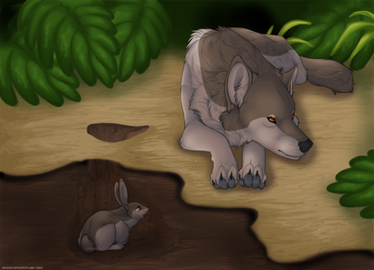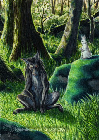 Wolf character Akru, and rabbit character "Sakari" belong to , artwork is by me.