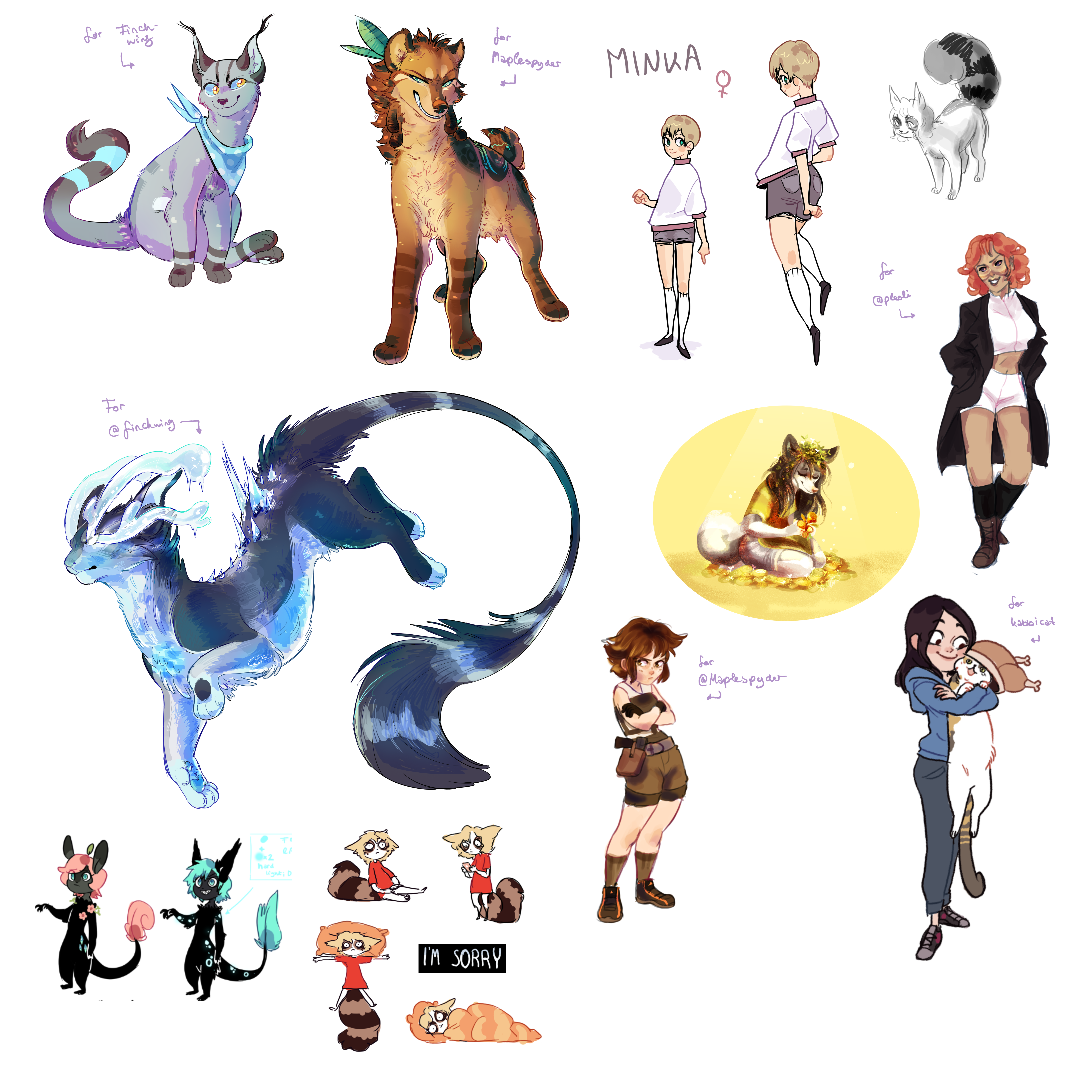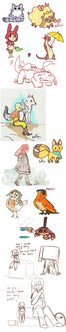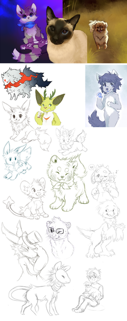 warrior cats I drew for tumblr, headshot sprites I did for a game, some TPP fanart, anxietyRelated content