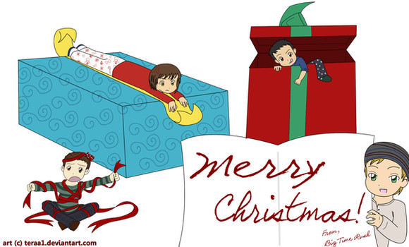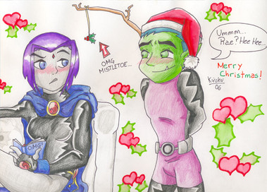 I know it stinks! And everyone does mistletoe pics at Christmas but I couldn't help it! I did this last night "patiently" for 12. I was also watching tv andnot paying attention.This is as close to "chibi" as you're ever gonna see from me. This is dedicated to ~momofan . Poor sis. She didn't feel well. But thankfully she's better today. Ugh, I hate how this turned out. But I really wasn't working that hard on it so I'm not surprised with it. Well, Merry CHRISTmas!