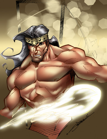 Just having a bit of fun doing a shirtless Thor with a colorful background.Done in Painter with the Real Bristle brushes.