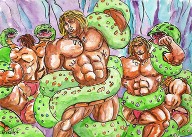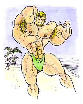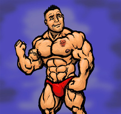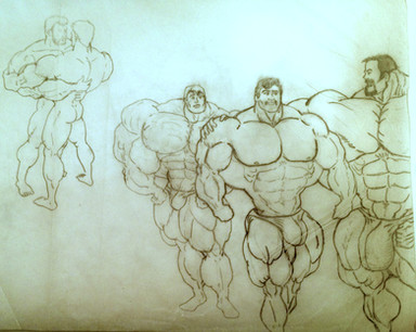 The guys do some pumped-up posing after their workout.9x12", black ink and watercolor
