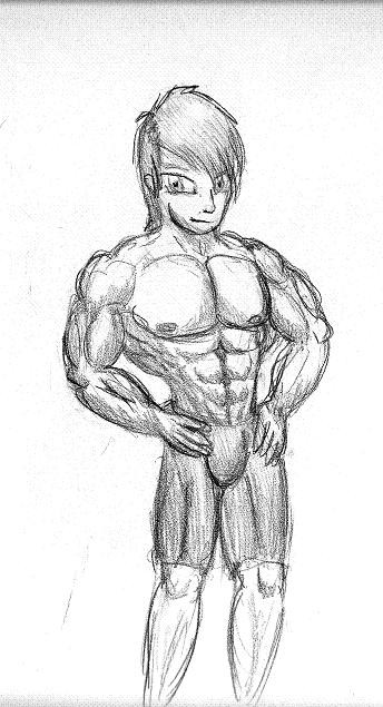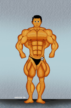 Another muscle guy done in Painter.This combo of brushes worked pretty well, with a nice textured look. Β The only problem was I had intended to blend in the linework as I went along, but couldn't really do that because the brushes I was using wouldn't cover it. Β Still, the thick lines seem to work.