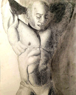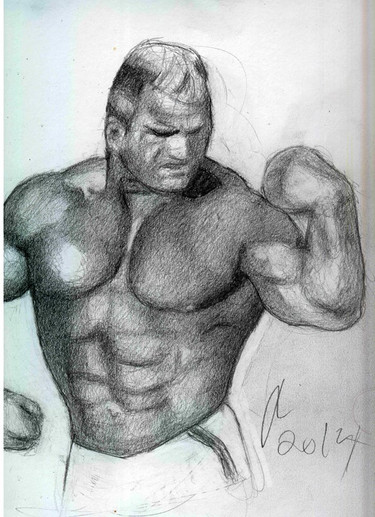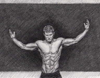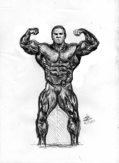 Shawn Ray, training his "Triassic Triceps", as the article called them. Guess I should have included a dinosaur in the pic9x12", pencil