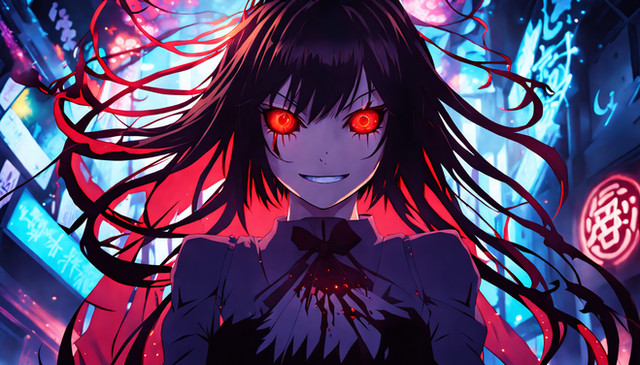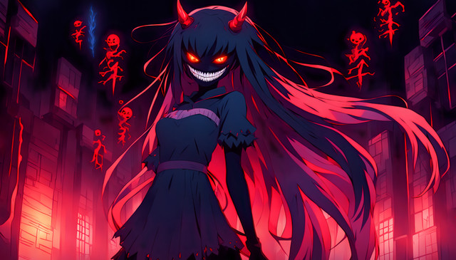 #digitalart #anime #fanart #animegirl #ai #dreamup #originalcharacter #characterdesign #horror #wallpaper #demongirl #ai_art