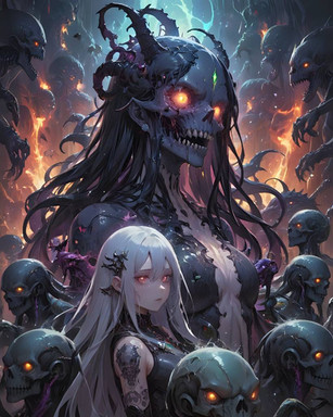 #digitalart #fanart #horror #ai #dreamup #anime #animegirl #monster #animedrawing #demongirl #characterdesign #portrait #originalcharacter #ai_art
