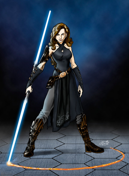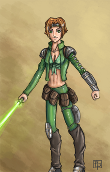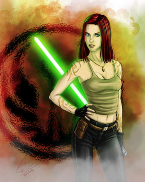 This is stunning! Brilliant composition and Love the colours, especially the shade of green used for her lightsaber