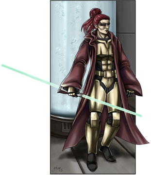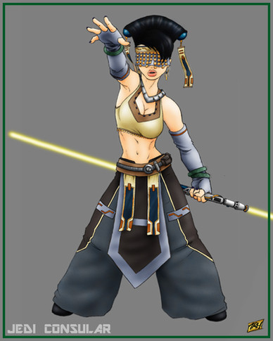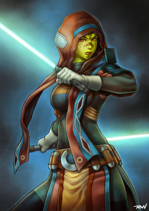 Another in my series of TOR characters! This time my Mirialan Jedi Consular Meera Syn. The symbol at her back is the emblem of The Raven Cross, a Republic-side PVP RP guild which you should check out because they're totally awesome.Pose referenced from 's fantastic selection of stock images!