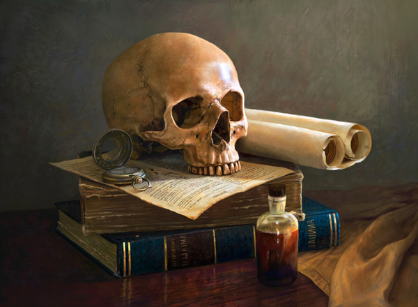 This looks so real, specially the skull and the table. Awesome work
