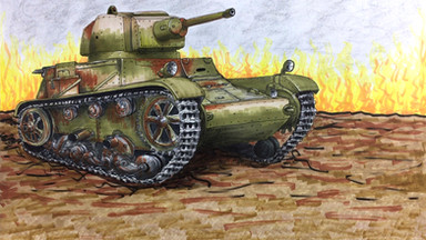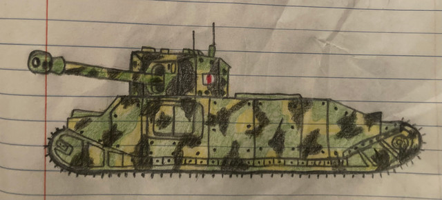 Great use of cast shadows. It really makes the piece look huge. Also like your knowledge of tanks