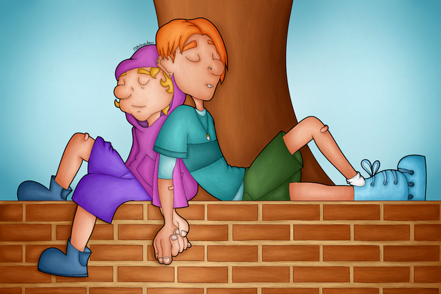 sad story time with 16 year old sid and arnold from hey arnold. i have a bunch of older headcanons for the hey arnold gang and one of them is sid being in a pretty bad relationship with gino because he’s the only other guy in the school interested in guys (well that’s what sid believes). don’t worry, they thankfully break up later on! it’s pretty sad and may be triggering so please read at your own risk... (i also drew this a while back and have noticed some mistakes, please forgive me) ..