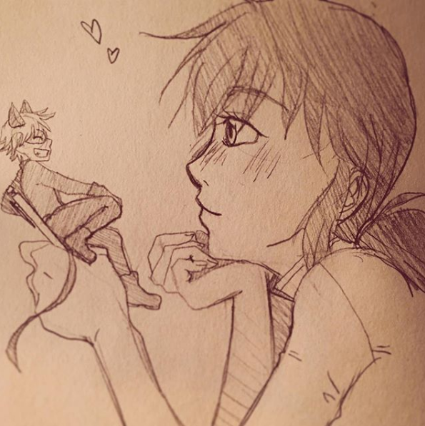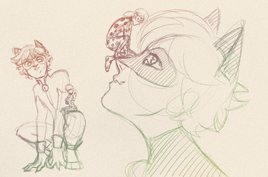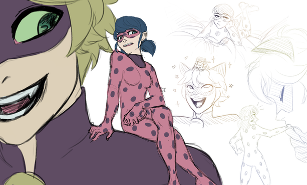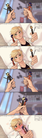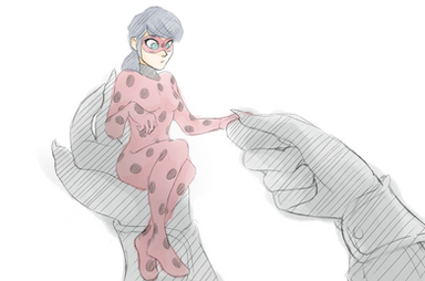 I love your tiny ladybug and giant Adrian/Cat noir pictures so much! hope to see more of them! maybe with a ladybug the SIZE of a ladybug, with Cat Noir totally unware it is her, and she fell in a drink he was sipping from. or on a spoon with pudding going up to his lips :3