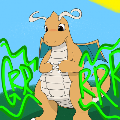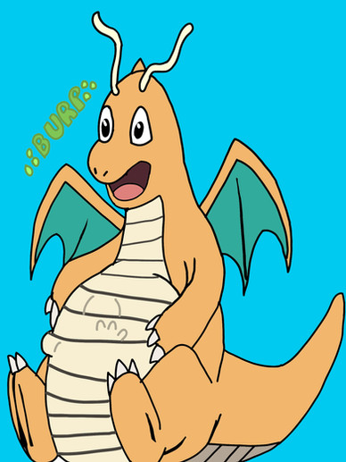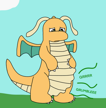 Dragonite is getting annoyed by his tummy when it's hunger for more food,but he refuses not to eat because he ate over 27 burgers.Related content