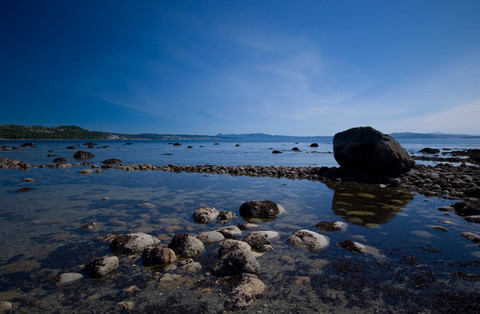 What an utterly perfect shot. The water is so calm and blue, and I love how the land rolls out before you, strangely brown but still alive. I love how you can see so much with this shot.