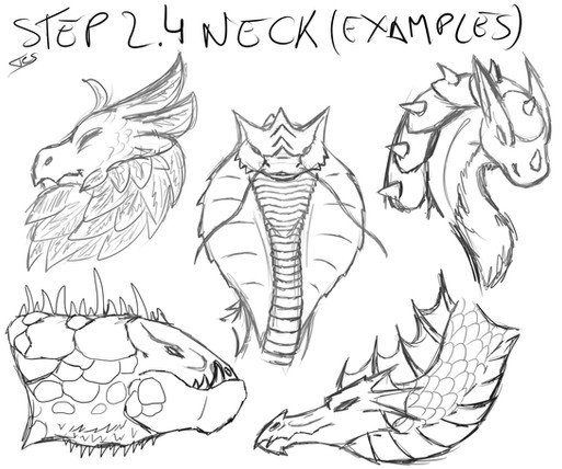 1. The throat. Drawing it as an iguana-like dewlap will help give the dragon a more reptilian look. Consider that the skin of the throat begins just under the chin. It is not mandatory to draw it, but it looks good ^^