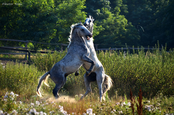 I love the way you caught them in your photograph! My mare and gelding play that way at times but I never have the camera with me. I was wondering if I could use the photo to make a graphic for my collection. I do not sale my work I just make them for the joy and sometimes use them on ponybox.com. I would be sure to credit you back to DA and include a link.