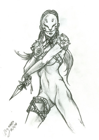 Lovely drawing, she has a very strong stance about her and I really love your anatomy skills. Very nicely done :3