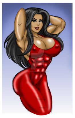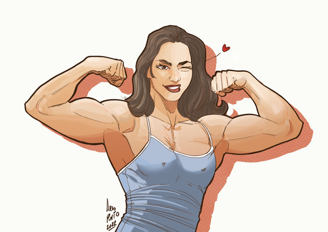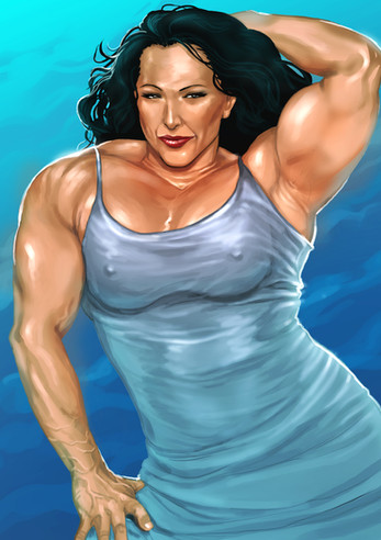 Is she by any chance based on "musclebeauty"? This buff lady on Pornhub who regularly uploads videos of herself.