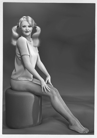 #doll #3d #afterparty #blue_eyes #curlyhair #girl #pinup #sitting #whitehair #barefootgirl #dazstudioiray #genesis8female #no_ai #wetware_generated_art