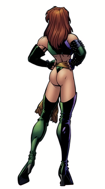 I've clipped her first appearance from "X-Patrol #1" (1996) and tried to fill in some parts that had been blocked out by Beast Boy's arm in the original panel and upscaled it. You can clearly see where I tried to fill things in, but this is still a learning process for me. As they say, it's a marathon, not a sprint. The original artwork is by Roger Cruz.