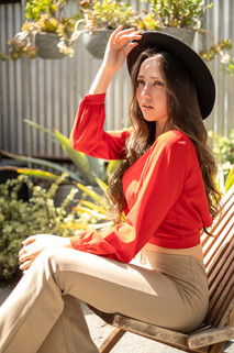 Wow! She is beautiful, and I love her eyes! That said, I thought you ought to shot her in front of a darker background instead. IMO, her skin tone and outfit's color are too close to the door's.