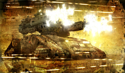 this is awesome on so many levels. i dig the flat blocky style the machinery is drawn in comparison with the effects and smokes around, and the "bam" sure adds to the brutal comic feeling : D