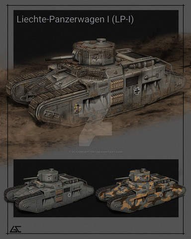 "The IL29 has distinguished itself as the premier heavy tank for the Imperial forces, incorporating a suite of defensive measures to keep crew-survivability exceptionally high. Incorporating a specially-constructed armored shell around the hull, turret, and turret basket capable of resisting all but the heaviest guns in the Republican arsenal, this shell is bolstered by additional skirt and applique armored at key frontal locations, as well as early-production ERA panels to deflect shaped-charge attacks. Additionally, there is a small loader's hatch in the rear of the turret that can serve as a crew escape route for a disabled tank.