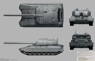 "The design of the ON-89 Av2 was spurred by early-war failures of the Imperial Armored Design Korps (ADK) to design a reliable and all-around vehicle capable of filling out the ranks of the Imperium's Armored Rejments. The preceding designs, the ON-56 and ON-43, were relatively abysmal attempts to produce a comprehensive fighting vehicle.