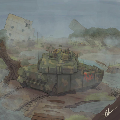 Haha... pretty funny, and a clever thing to paint onto a tank... Nice painting. c: