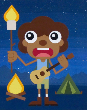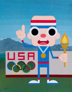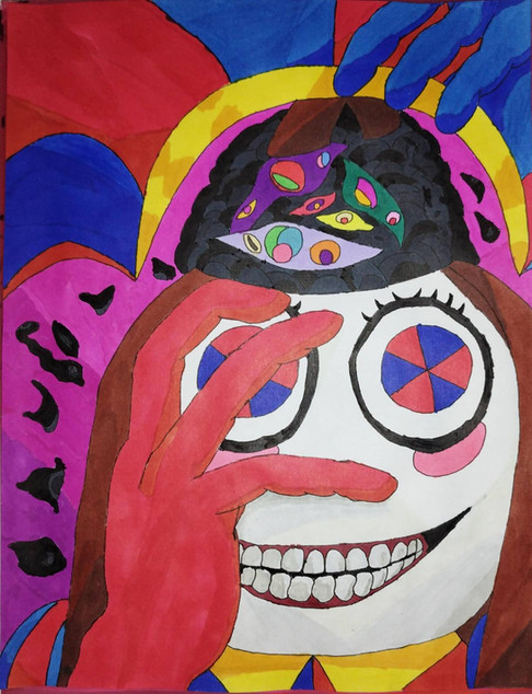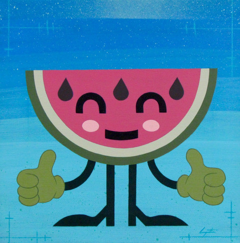 Acrylic, colored pencil, and spray paint on canvas 9x12".Charles Morgenstern, 2018.