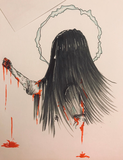 O vermelho do sangue ficou tão legal no desenho preto e branco!!!