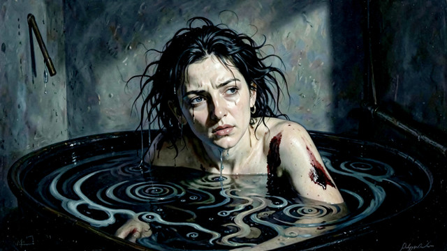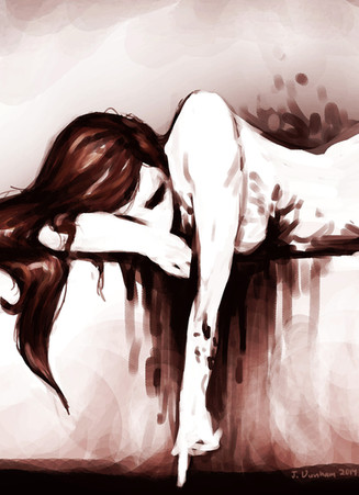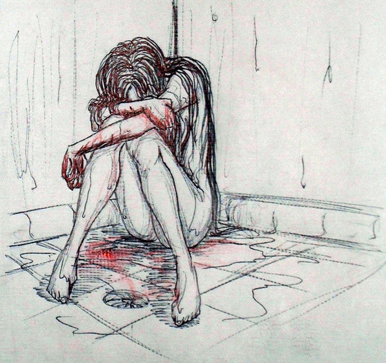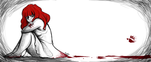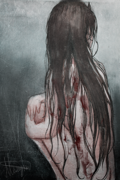 Sad... she looks broken. I like the bright hand print though. It's stunning how vibrant our blood appears!