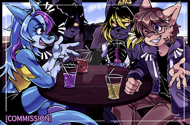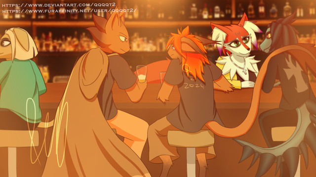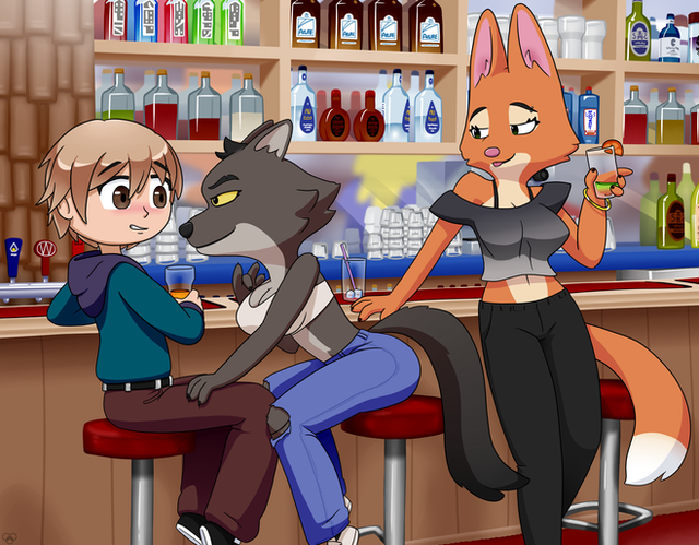 #anthro #anthropomorphic #bar #canine #commission #dragon #drink #fox #hellhound #hug #laura #loona #maverick #moxi #scalie #twokinds #wolf #helluva_boss