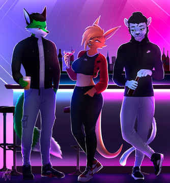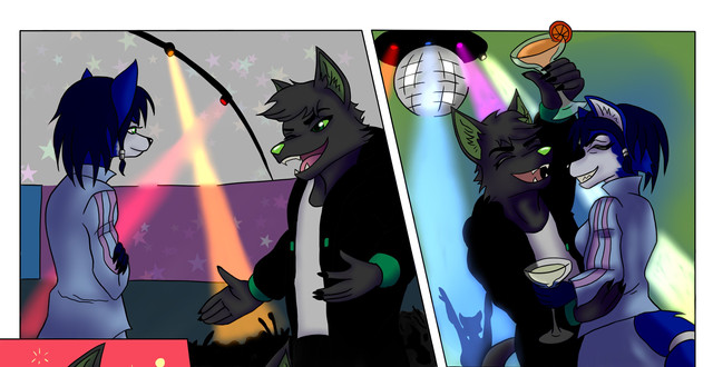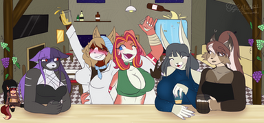 Shoutouts to KeiththeLoneWolf on FurAffinity or LoneKeith on Twitter, and a friend, for another commission!Just because the bar is lovely and quaint doesn't mean you can't party hard!