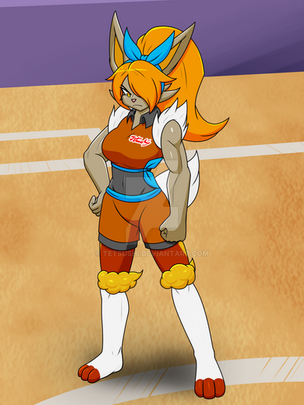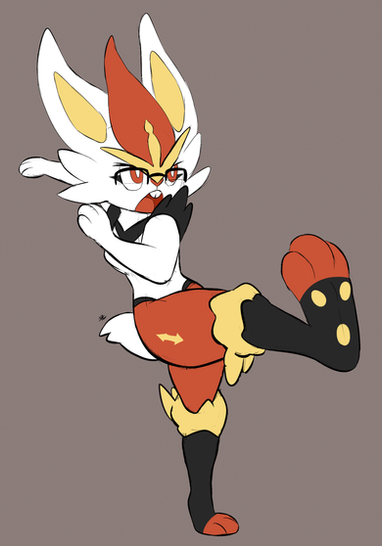 Commission for GreatNovaDragon on Twitter featuring a Gigantamax Cinderace (who isn't actually that much bigger than a regular Cinderace) showing off her fiery kicks! Come get some!Related content