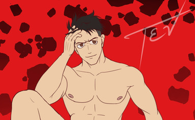 This is Mark, my other OC and Rei's boyfriend! They are the main characters of a story I came up with last year called The Darkness of the Night!You can supportme at www.gumroad.com/tev27 and you can see the uncensored picture at www.twitter.com/tev27yaoi