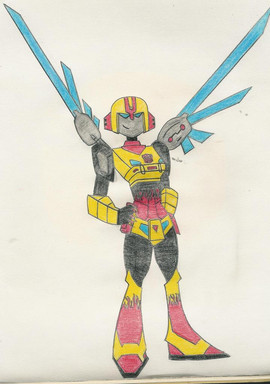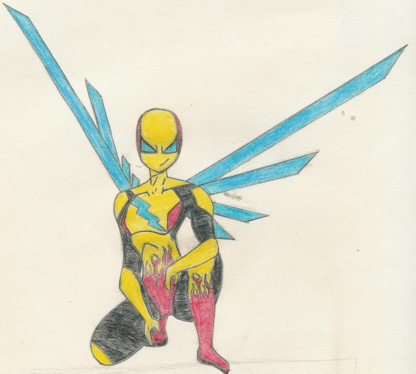 Weapons: regular weapons-machine gun and a two swords. Special ability weapons- Lightbulb: Two plasma cannons with extrem strength. Heatblast: Entire body engulfs in flames. Jumpback: When fully charged or mad releases ether static electricity or a blast of energy (depending on how she used it ether fully charged or mad) getting anything in its way. Also uses hands and legs to fight.