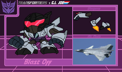 Specs based on Bob Budiansky's original profile for G1 Blast Off, as seen in the Marvel Transformers Universe.