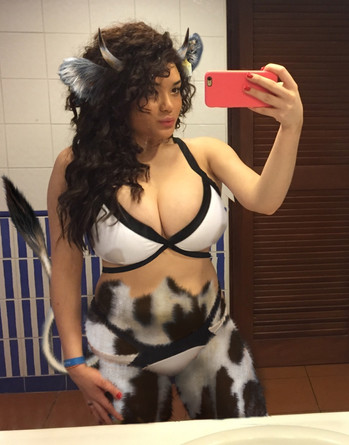 She ran down the hall toward the bathroom until she caught her reflection in the window on the way. She... she looked like she was half girl half animal, cow to be specific. She looked at her reflection in shock, then down at her body, it looked... pudgier than she remembered, her breasts were bigger, hips wider, she had quite the muffintop going on now. To make matters worse she had a variety of cowlike features and no idea how or why this had happened. All she knew was that she felt like she would be more comfortable outside in a field than inside the closed walls of her apartment. Maybe she would take a ride out to the country while she tried to figure out what was going on.