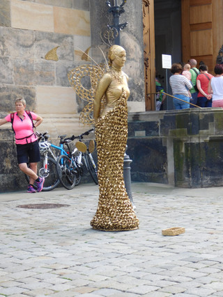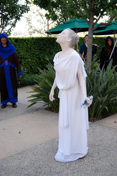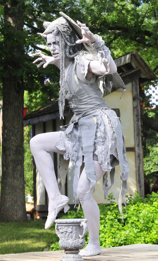 Fantastic makeup, costume, and incredible discipline to hold one position for so long.