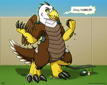 Feathers? Not what he expected, but It'll do.Inked and colored from the sketch I did before. I really like this one.