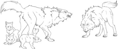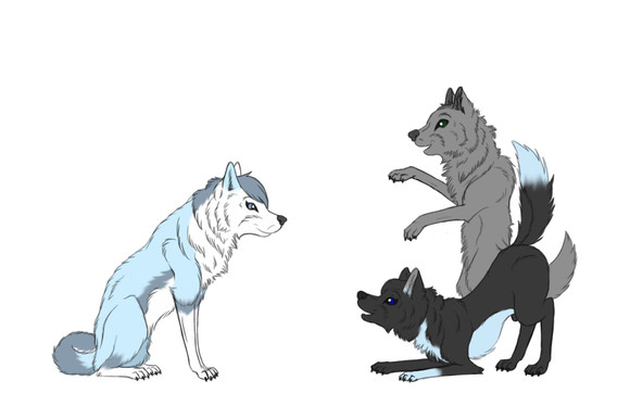 Leo: "Hey Dad! Who is that?" He asks seeing a light gray wolf.