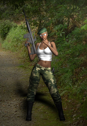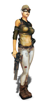 Really nice. I like the pants alot. Her skin looks a little 'dead' though, maybe adding some more brown or a really subtle hint of red would bring her back to life. Also, it might look cool to have her dirtied up a little, smudge marks on exposed skin, dirt on jeans, etc.