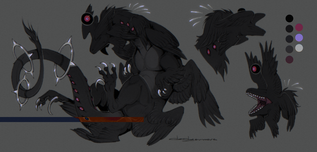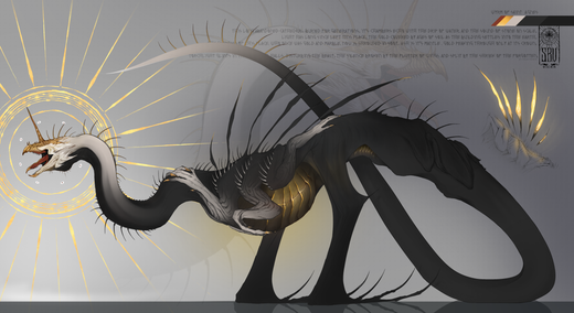 #animal #beast #black #concept #creature #doodle #dragon #fantasy #feral #fullbody #glow #glowing #gold #heads #hydra #illustration #kaiju #male #monster #oc #ref #reptile #scary #shadow #skeleton #space #wings #yellow #original_character #reference_sheet